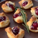 Cranberry Brie Party Bites are flaky pastries filled with creamy brie cheese and tart cranberry sauce, perfect for any festive gathering.