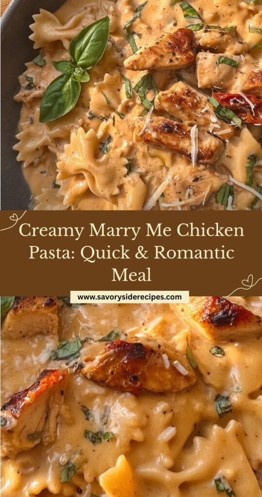 Creamy Marry Me Chicken Pasta is not only a delightful treat but also incredibly versatile. Its rich flavors and comforting texture make it perfect for any occasion, whether it’s a romantic dinner or a cozy weeknight meal. Feel free to customize it with your favorite ingredients or seasonal vegetables. Don’t hesitate; give this recipe a try and impress your loved ones!